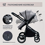 максимальная нагрузка 22 кг + 3 кг корзина;6 положений регулировки родительской ручки;8 положений регулировки капора.