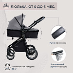 внешние габариты: в положении «люлька» (ДхШхВ) 99х55х113 см, в положении «прогулочный блок» (ДхШхВ) 99х55х110 см;