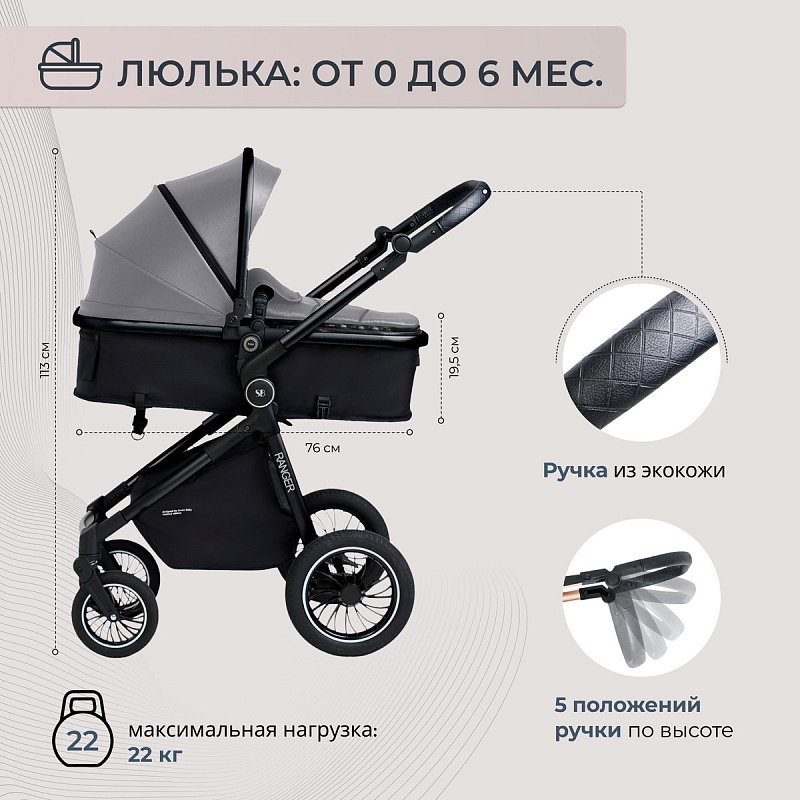 Лёгкая, функциональная и практичная коляска-трансформер Ranger от Sweet Baby — идеальный выбор для вашего малыша от рождения до трёх лет.