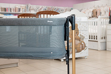 Колыбель можно использовать как самостоятельную детскую кроватку. Предусмотрена регулировка высоты люльки. Прочная надежная сетка с молниями позволяет родителям присматривать за ребенком. Матрасик имеет съемный чехол на молнии. Боковой бортик легко опускается и поднимается обратно. При использовании колыбели в качестве приставной кроватки рекомендуется крепление к родительской кровати при помощи специальных ремней (входят в комплект). Также мама может приподнять изголовье ложа, что улучшит дыхание малыша во время простудных заболеваний и снизит риск срыгивания после кормления. Регулируемая высота опор дает возможность создать наклон до 30°