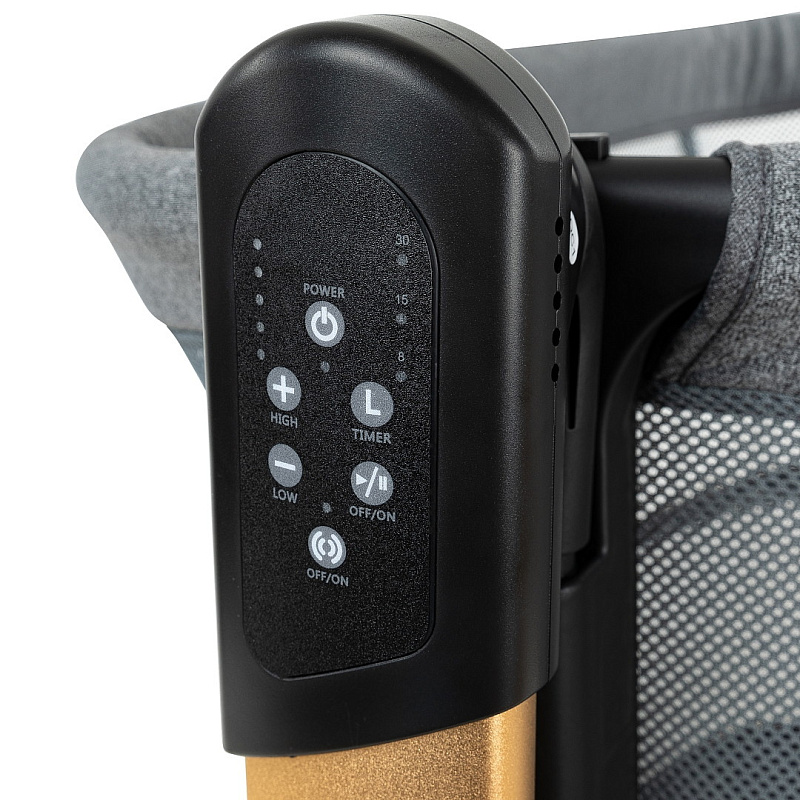5 скоростей качания, система индукционного качания, таймер на 8, 15, 30 минут, музыкальное сопровождение с регулировкой громкости (12 мелодий)