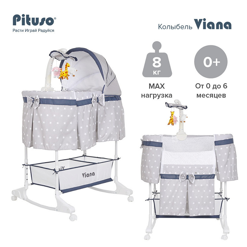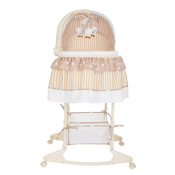 Колыбель-качалка предназначена для сна малыша с первых дней его жизни и до 5-6 месяцев (пока малыш не научится переворачиваться). Можно использовать как колыбель или как приставную кроватку. Каркас изготовлен из стального профиля, чехол произведен из дышащей ткани, которую можно стирать. Удобная корзина предназначена для хранения аксессуаров. Колесики для перемещения по комнате.
