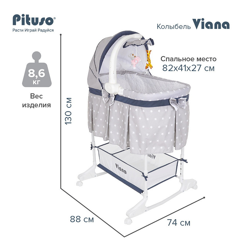 Колыбель Pituso Viana на колёсах 3 в 1 YS401-SB Stars Beige/бежевый