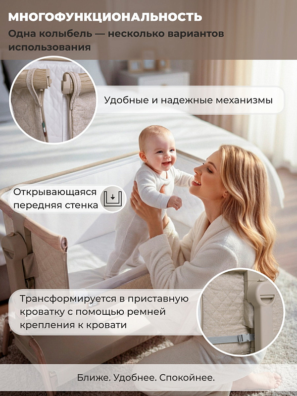 Колыбель приставная Sweet Baby Amici 427647 бежевая /бук