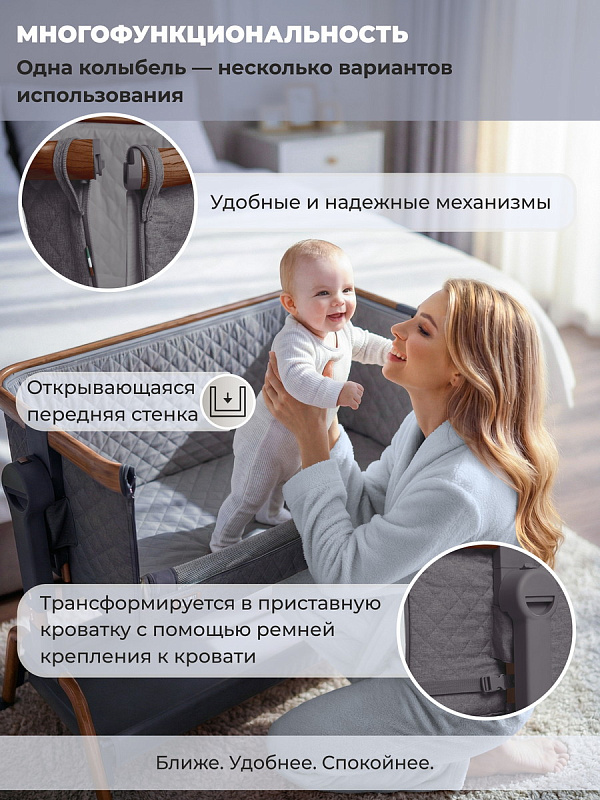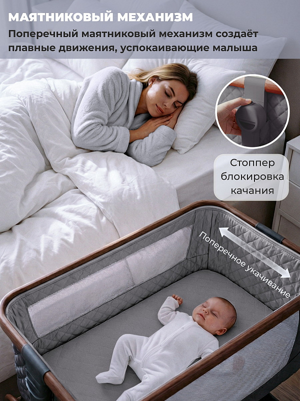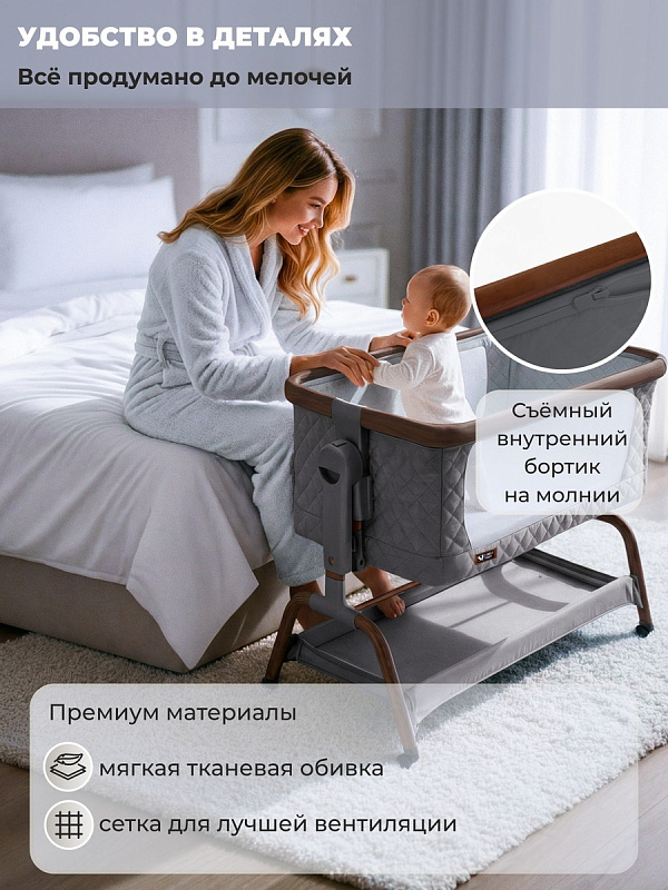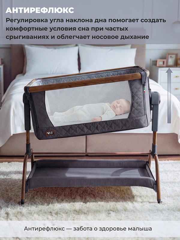 Колыбель приставная Sweet Baby Amici 427648 темно серая /дуб