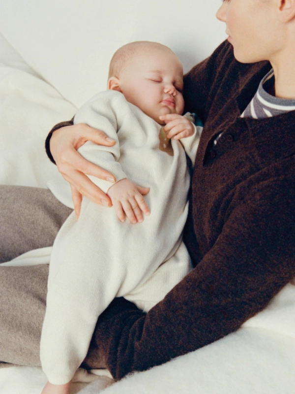 Вязаный комбинезон с мишкой похож на первого плюшевого друга — вдохновляет много мечтать и засыпать с самой счастливой улыбкой.