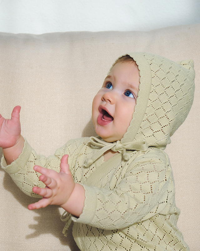 Гипоаллергенный 100% хлопок с ажурным узором обеспечивает естественный воздухообмен и спасает малышку от перегрева в солнечные +25 °C.