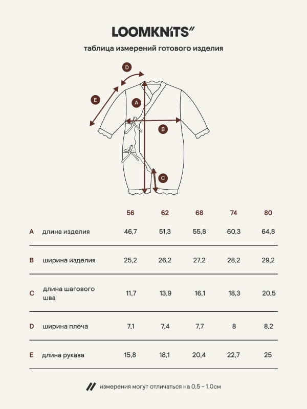 Слегка приспущенный рукав дарит рукам свободу движений во время сна, игр и прогулок. Завязки легко регулируются, чтобы аккуратно зафиксировать комбинезон.