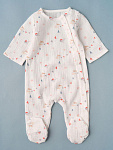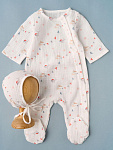 Комбинезон и чепчик из нежного муслина, на кнопках. Удобная модель, позволит легко и быстро переодевать малыша. Кнопки расположены на боковой части (с левой стороны), сверху донизу.