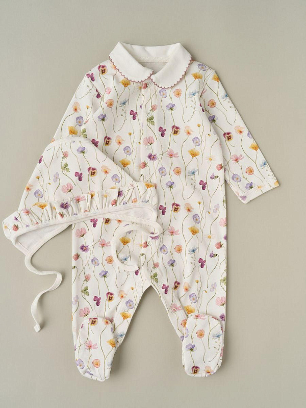 Комбинезон и чепчик с рюшей Little Star Фиалки (интерлок) 31834 (ЧЗ-мз) кремовый 56