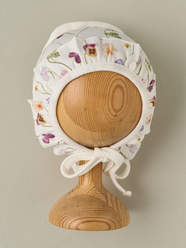 Чепчик из хлопка с завязками: бережно фиксируется, дополняет образ; отличный подарок новорождённому.