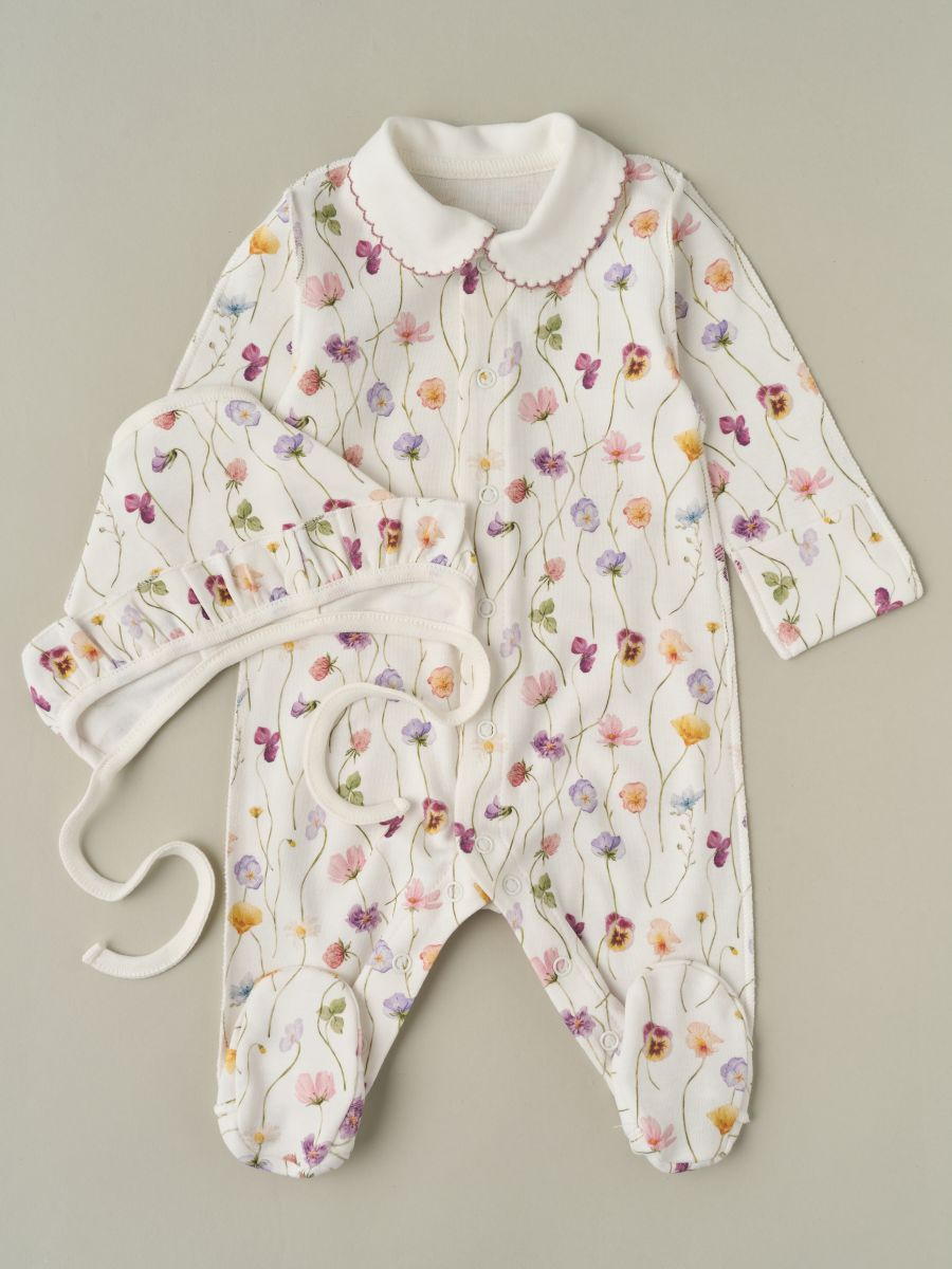 Комбинезон и чепчик с рюшей Little Star Фиалки (интерлок) 31834 (ЧЗ-мз) кремовый 62