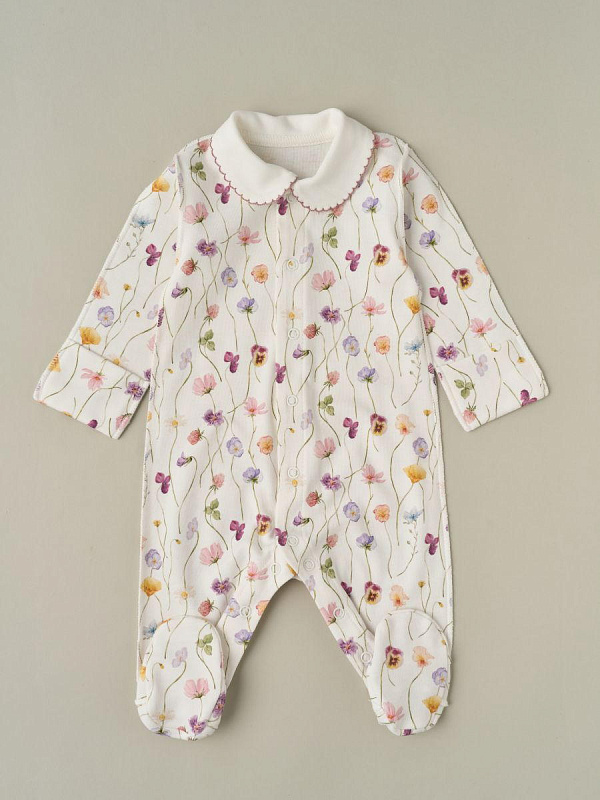 Комбинезон и чепчик с рюшей Little Star Фиалки (интерлок) 31834 (ЧЗ-мз) кремовый 62Нет оценокХарактеристики