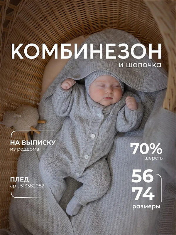 Комбинезон и шапка НаследникЪ Выжанова Вьюнок НВ6032 ЧЗ светло-серый 62