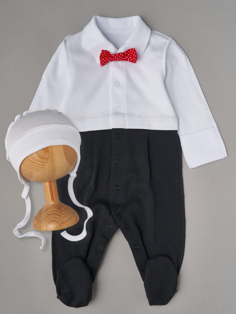 Комбинезон и шапочка-котелок Little Star Джентльмен 30392 (ЧЗ-мз) белый/графит 56