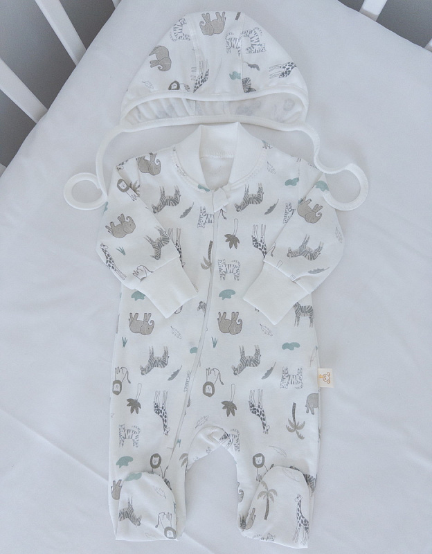 Комбинезон Lappetti Африка с длинным рукавом нательный на молнии ЧЗ КН01/10 молочный 62