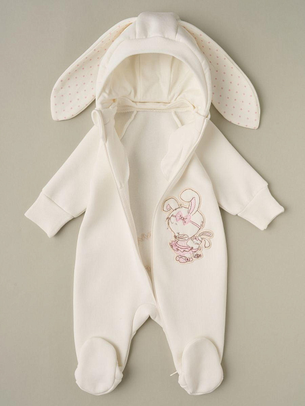 Комбинезон Little Star Лапочка Дочка с отстегивающимся капюшоном футер с начесом 823015 (ЧЗ-мз) кремовый 68