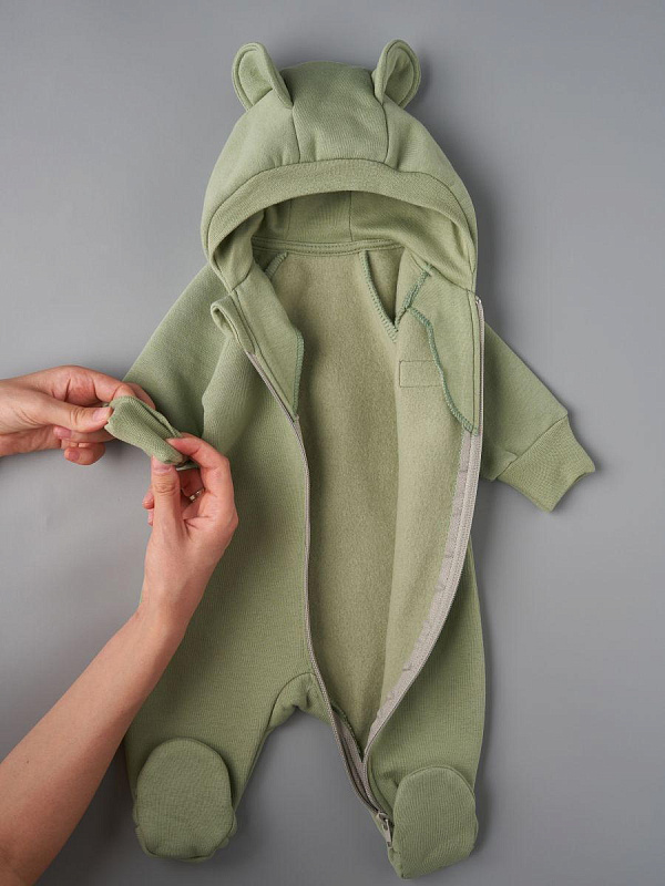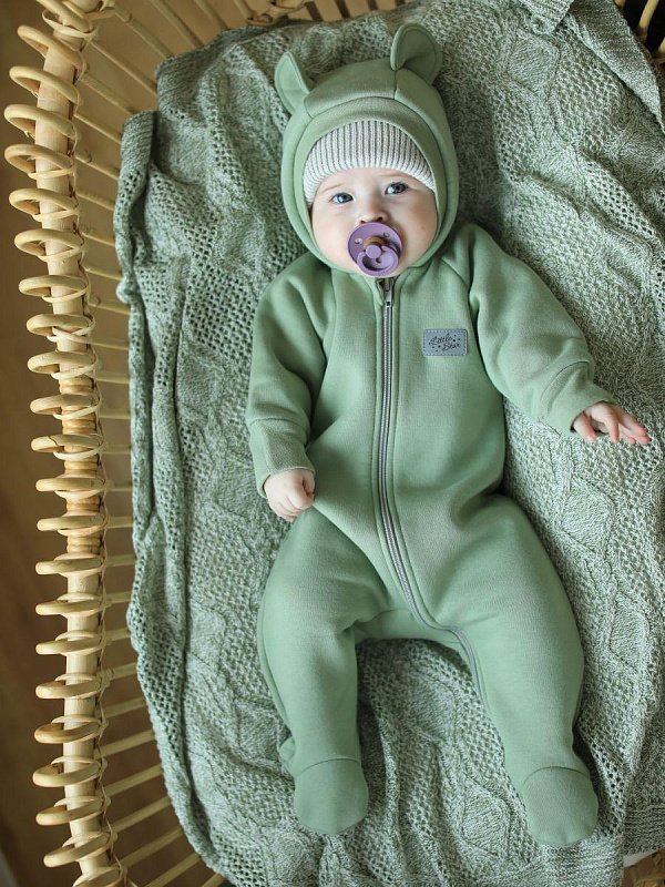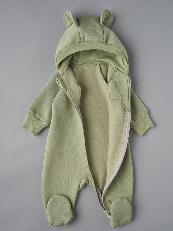 Комбинезон Little Star Мишка с капюшоном футер с начесом 30321 (ЧЗ-мз) фисташковый 62