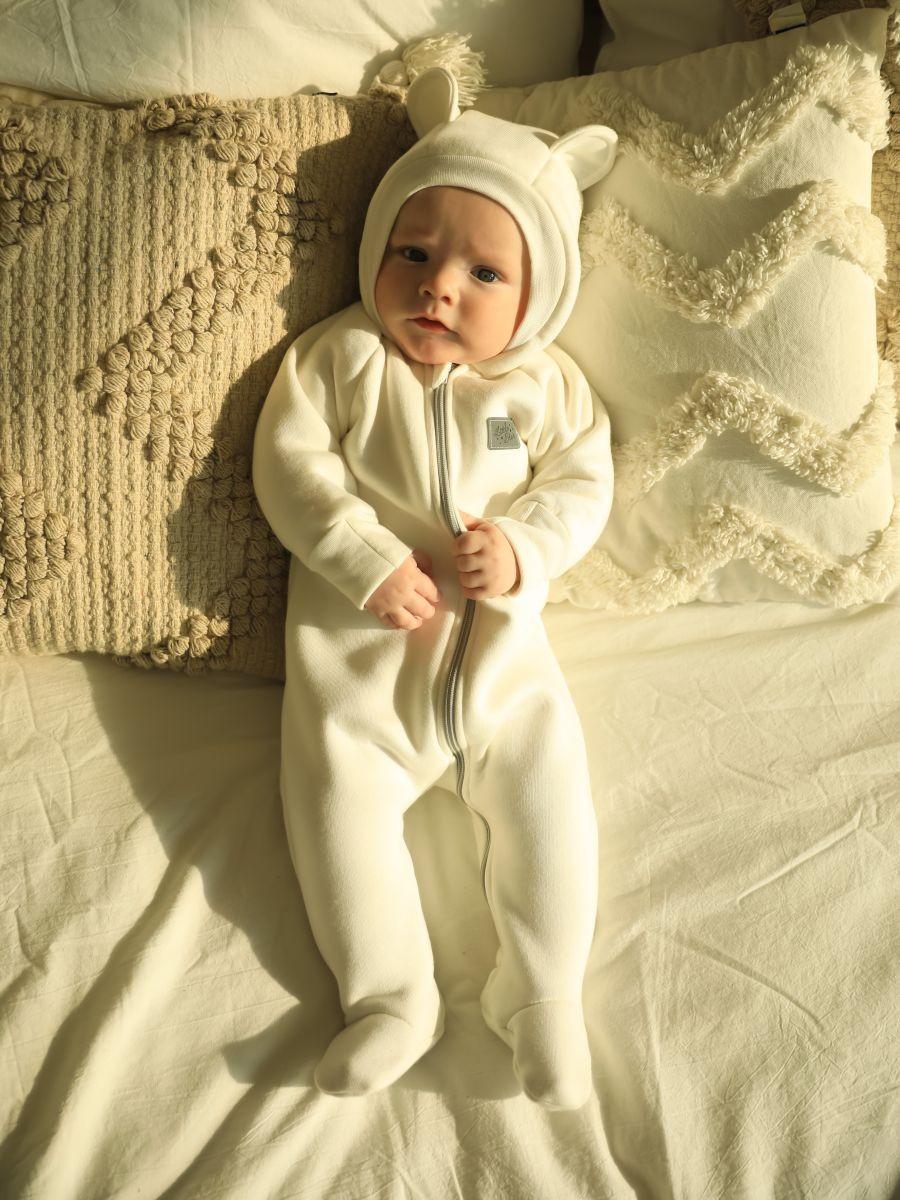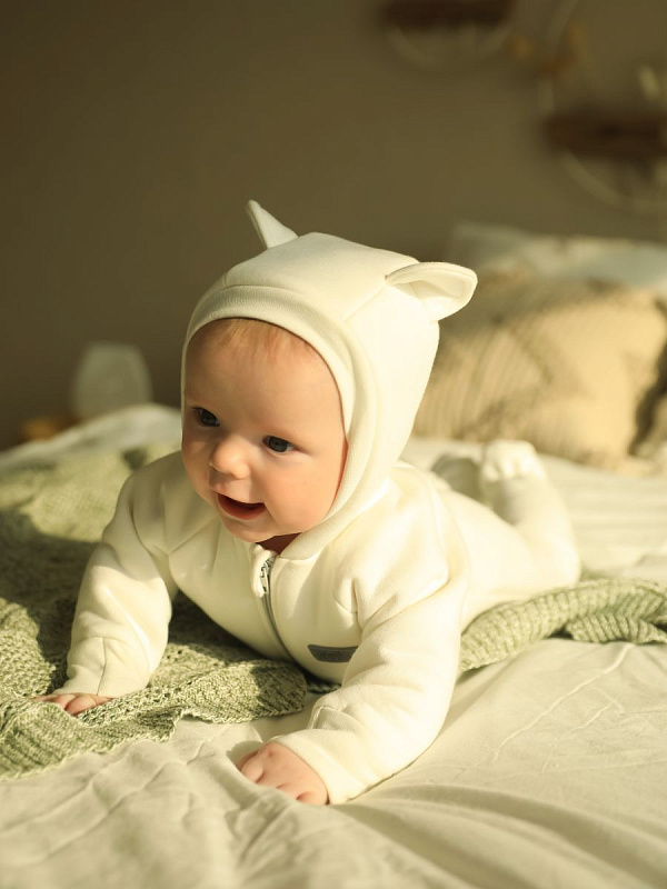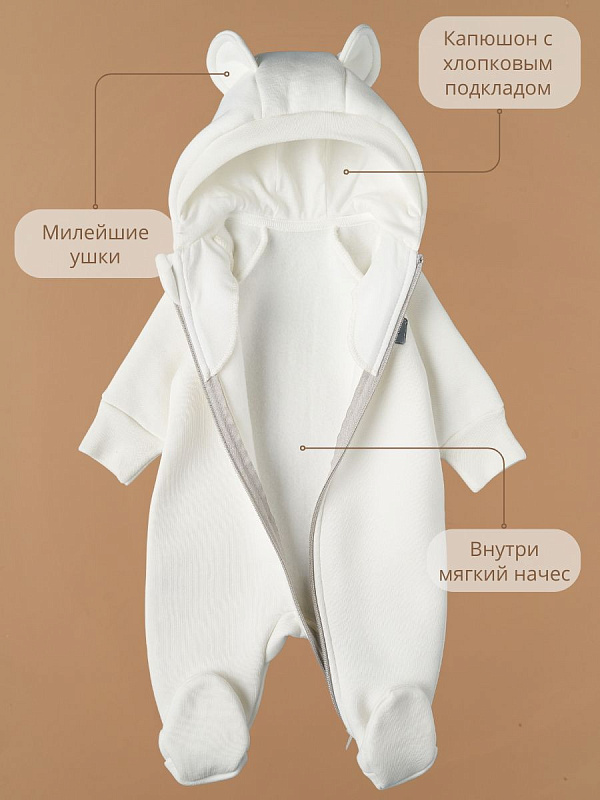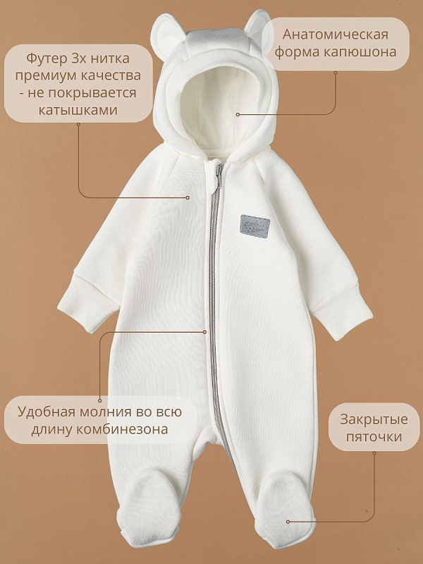 Комбинезон Little Star Мишка с капюшоном футер с начесом 30321 (ЧЗ-мз) крем 74