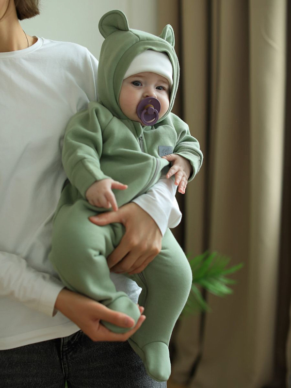 Комбинезон Little Star Мишка с капюшоном футер с начесом 30321 (ЧЗ-мз) оливковый 68