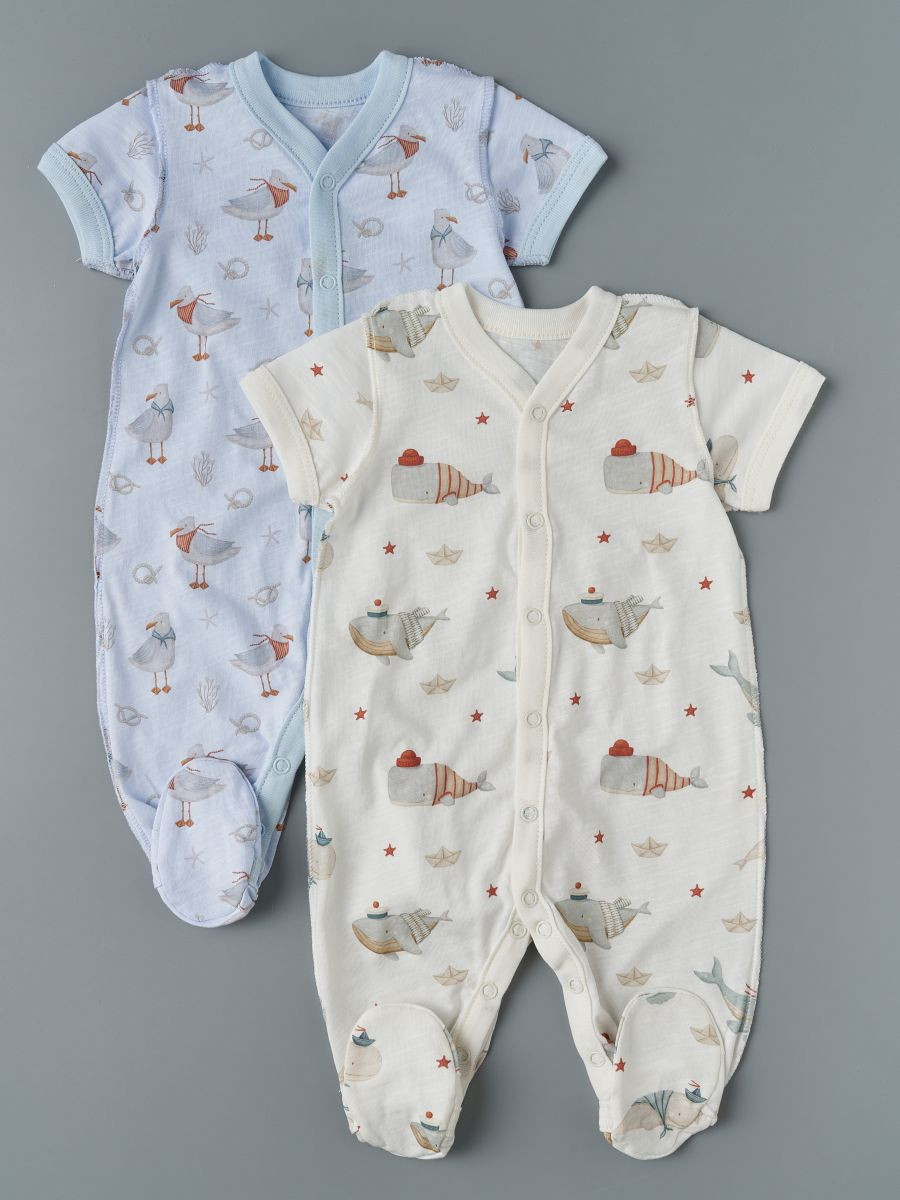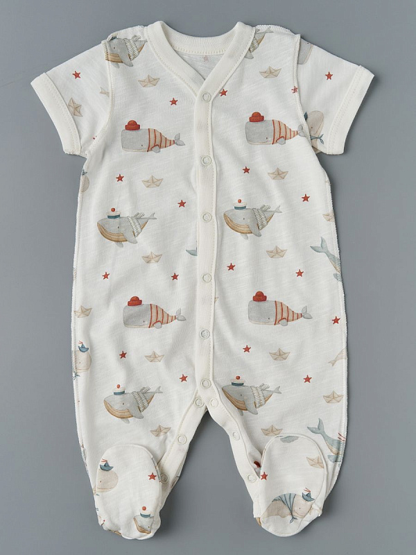 Комбинезон Little Star на кнопках короткий рукав 2 шт. 7062 киты и чайки, крем/голубой 62Нет оценокХарактеристики