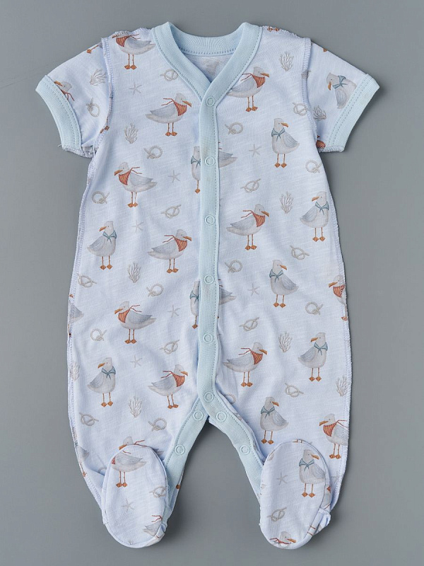 Комбинезон Little Star на кнопках короткий рукав 2 шт. 7062 киты и чайки, крем/голубой 62