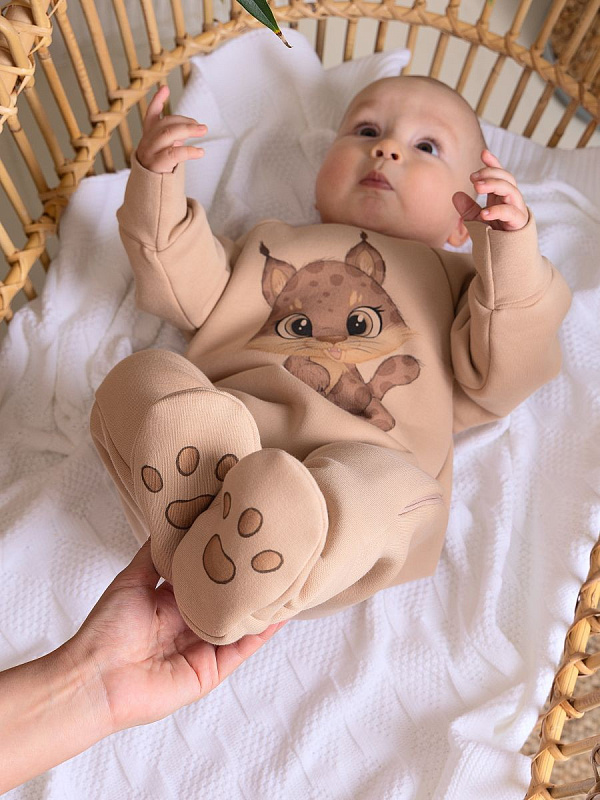 Комбинезон Little Star на молнии термобелье 83045 рысенок, бежевый 56