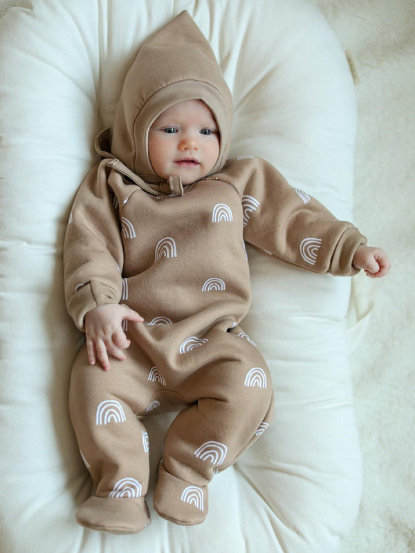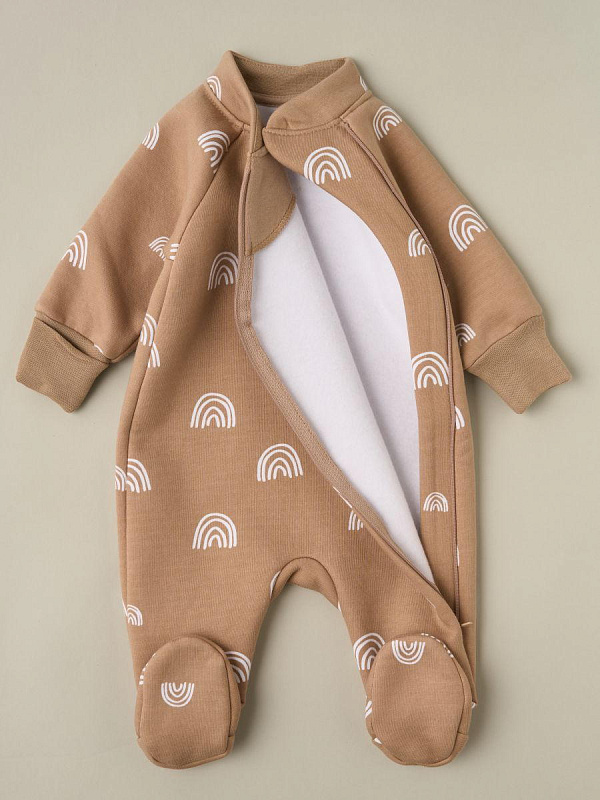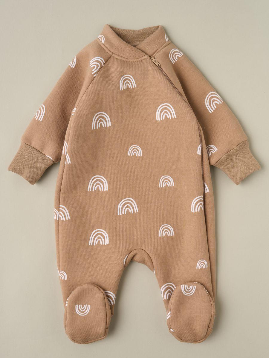 Комбинезон Little Star Радуги из футера с начесом 0214 (ЧЗ-мз) бежевый 68