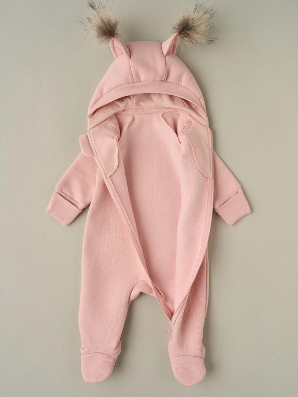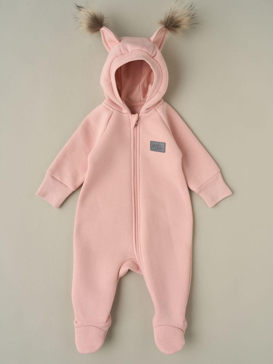 Комбинезон Little Star Рысенок с капюшоном футер с начесом 30321 (ЧЗ-мз) пудровый 68