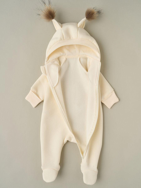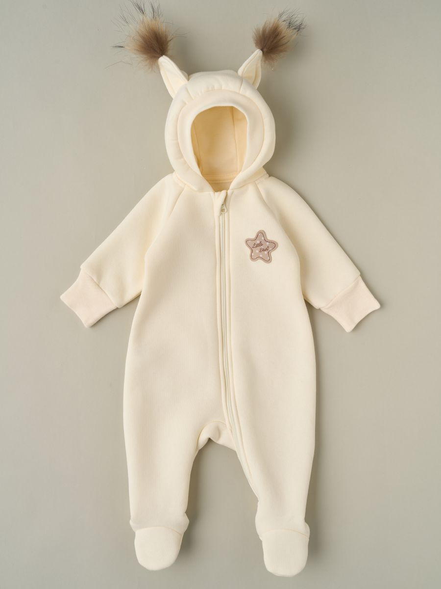 Комбинезон Little Star Рысенок с капюшоном футер с начесом 30321 (ЧЗ-мз) сливочный 74