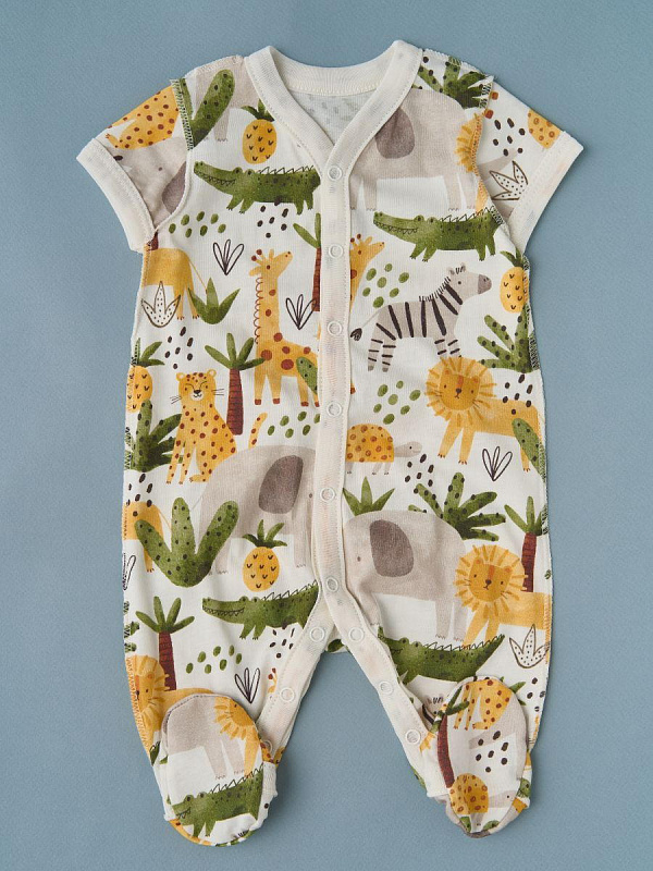 Комбинезон на кнопках короткий рукав Little Star Сафари и жирафы 2 шт 7062 (ЧЗ-мз) крем 56Нет оценокХарактеристики