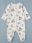 Комбинезон из нежного трикотажа на кнопках с принтом . Удобная модель, позволит легко и быстро переодевать малыша. Кнопки расположены по центру, сверху донизу. Также, для удобства смены подгузника, мы предусмотрели кнопочки и между ножек. Ножки закрыты в размерах 44-80 Швы наружу и антицарапки в размерах 44-62