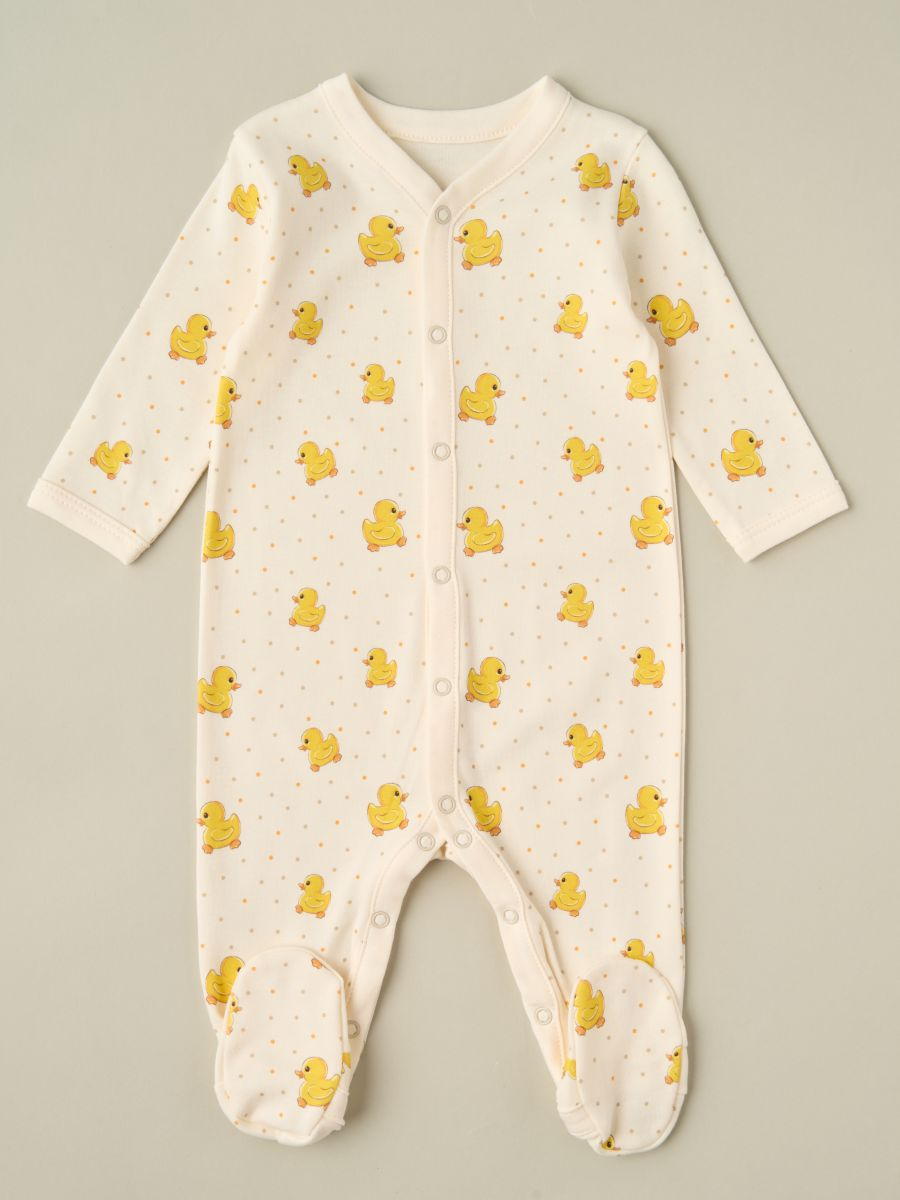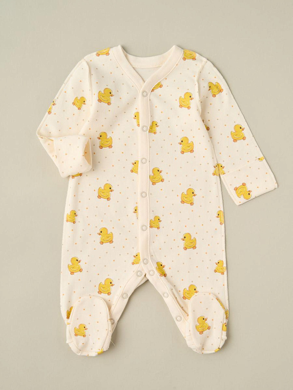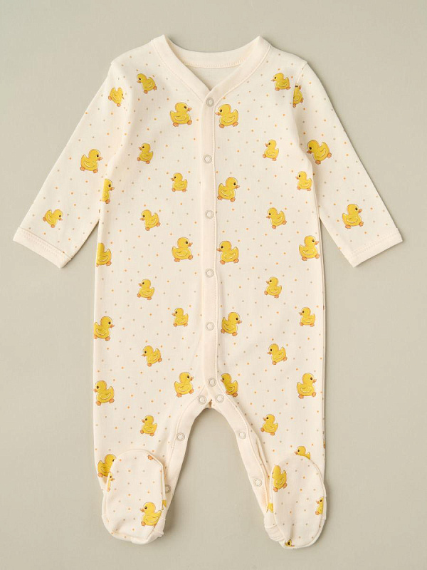Комбинезон на кнопках Little Star Уточки интерлок 30032 (ЧЗ-мз) сливочный 74
