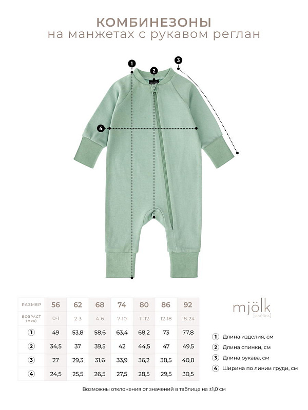 Комбинезон Mjölk [мьёльк] Sleep and Play — классический комбинезон на молнии с открытой ножкой и рукавом реглан, выполненный из плотного и очень мягкого 100% хлопка.