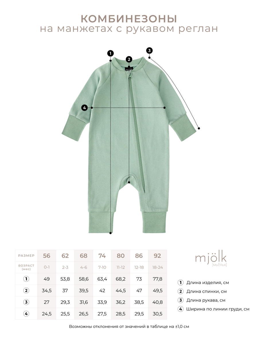 Комбинезон на манжетах Mjolk Молочный с рукавом реглан 62