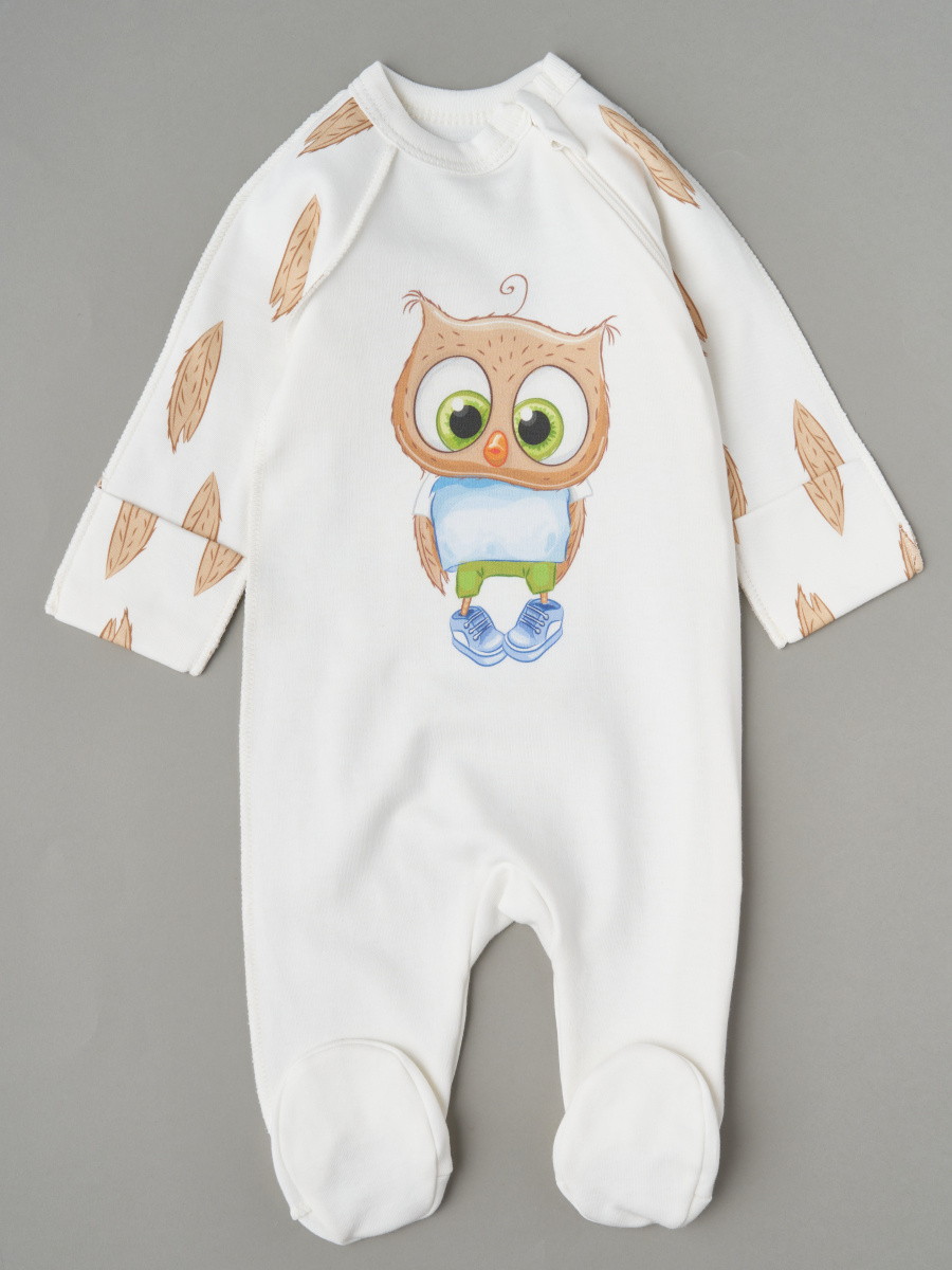 Комбинезон на молнии Little Star 0208 совенок, крем 68
