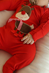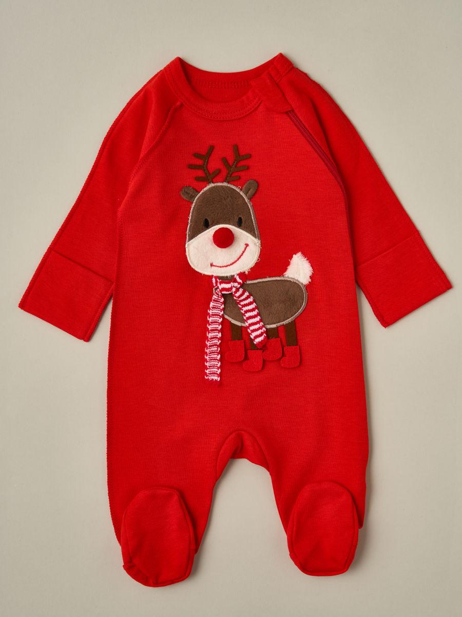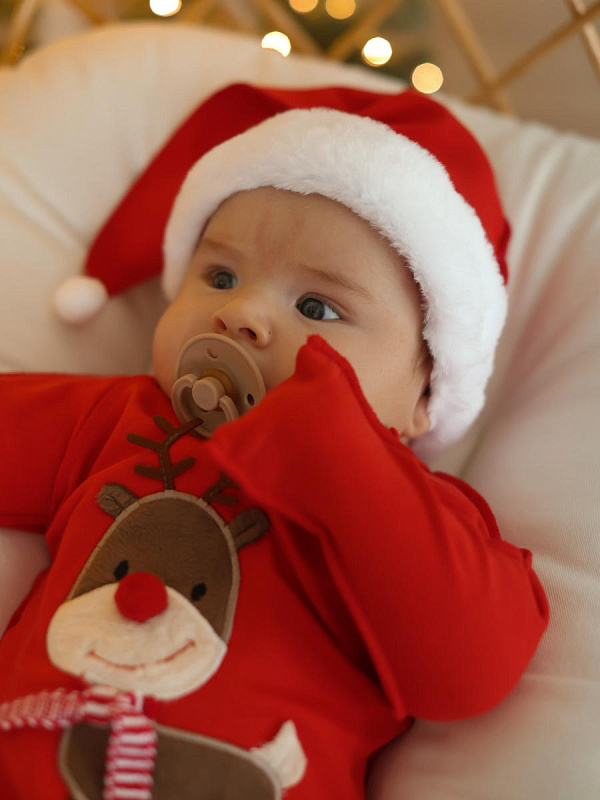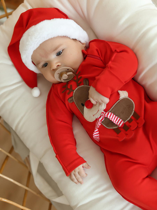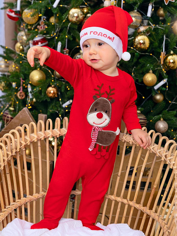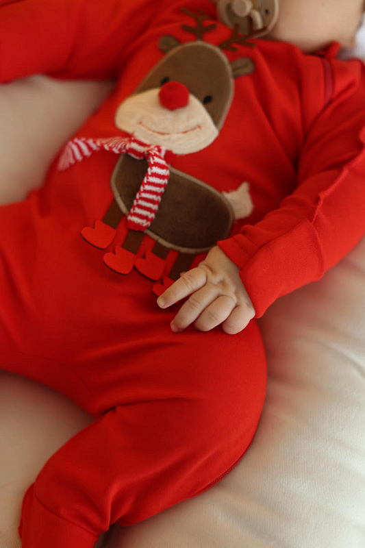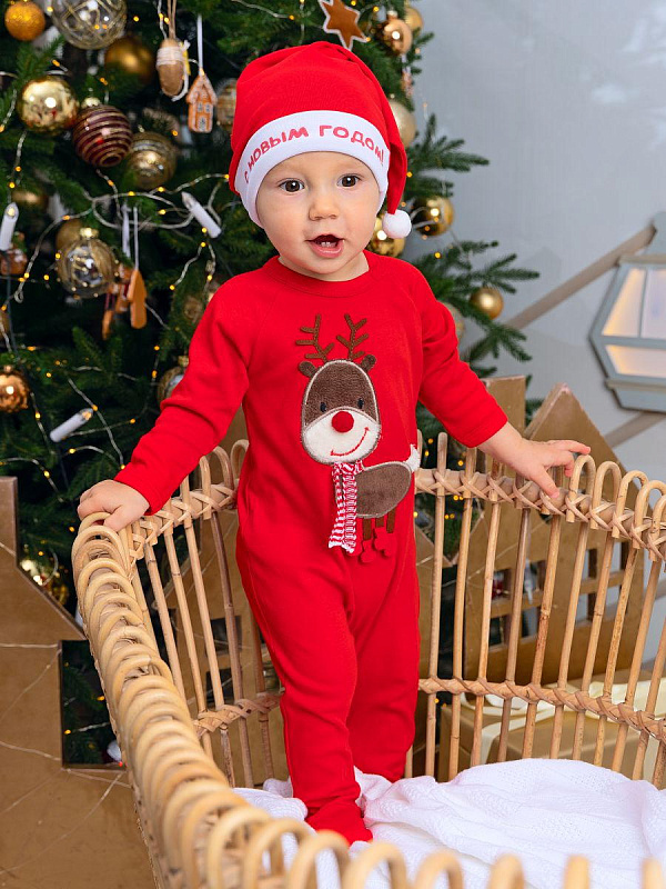 Комбинезон застёгивается на удобную застёжку, что позволяет легко надевать и снимать его. Этот новогодний комбинезон станет отличным нарядом для вашего малыша на празднике.