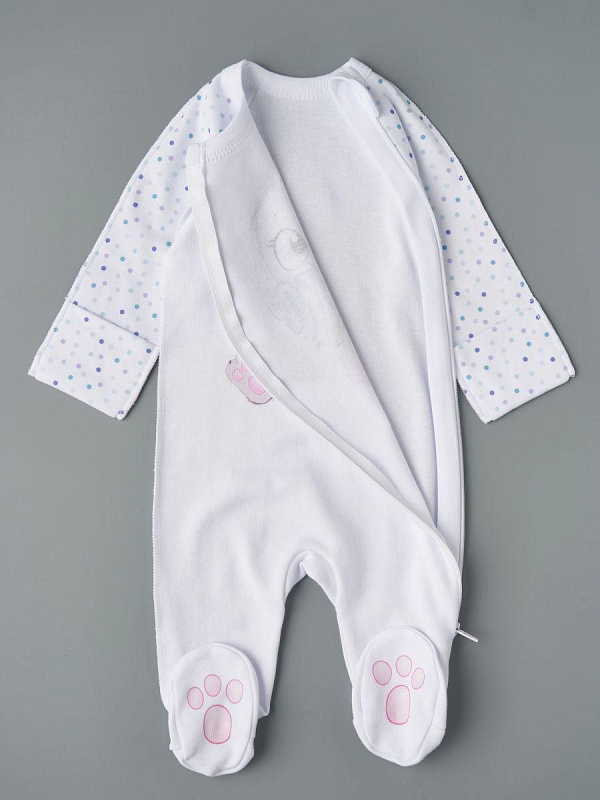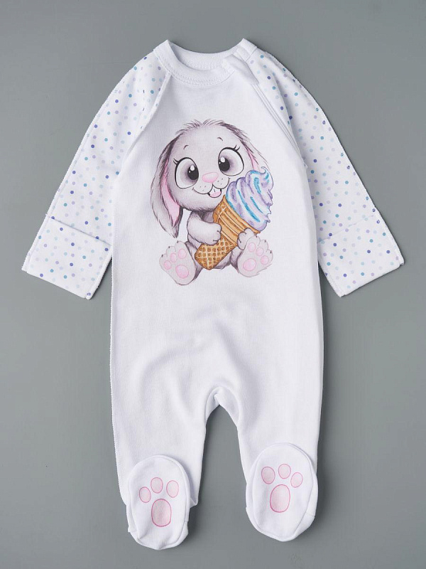 Комбинезон на молнии Little Star Зайка с мороженым 0208 (ЧЗ-мз) белый 68
