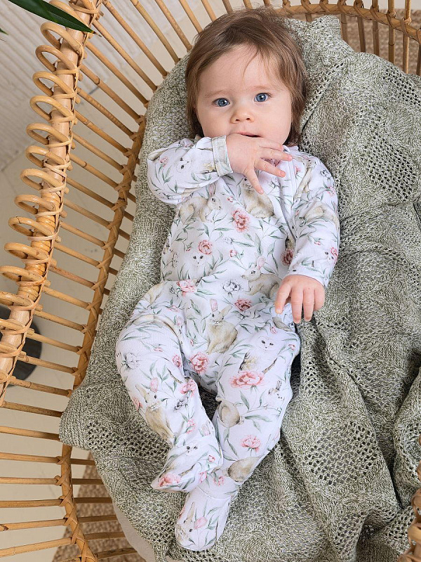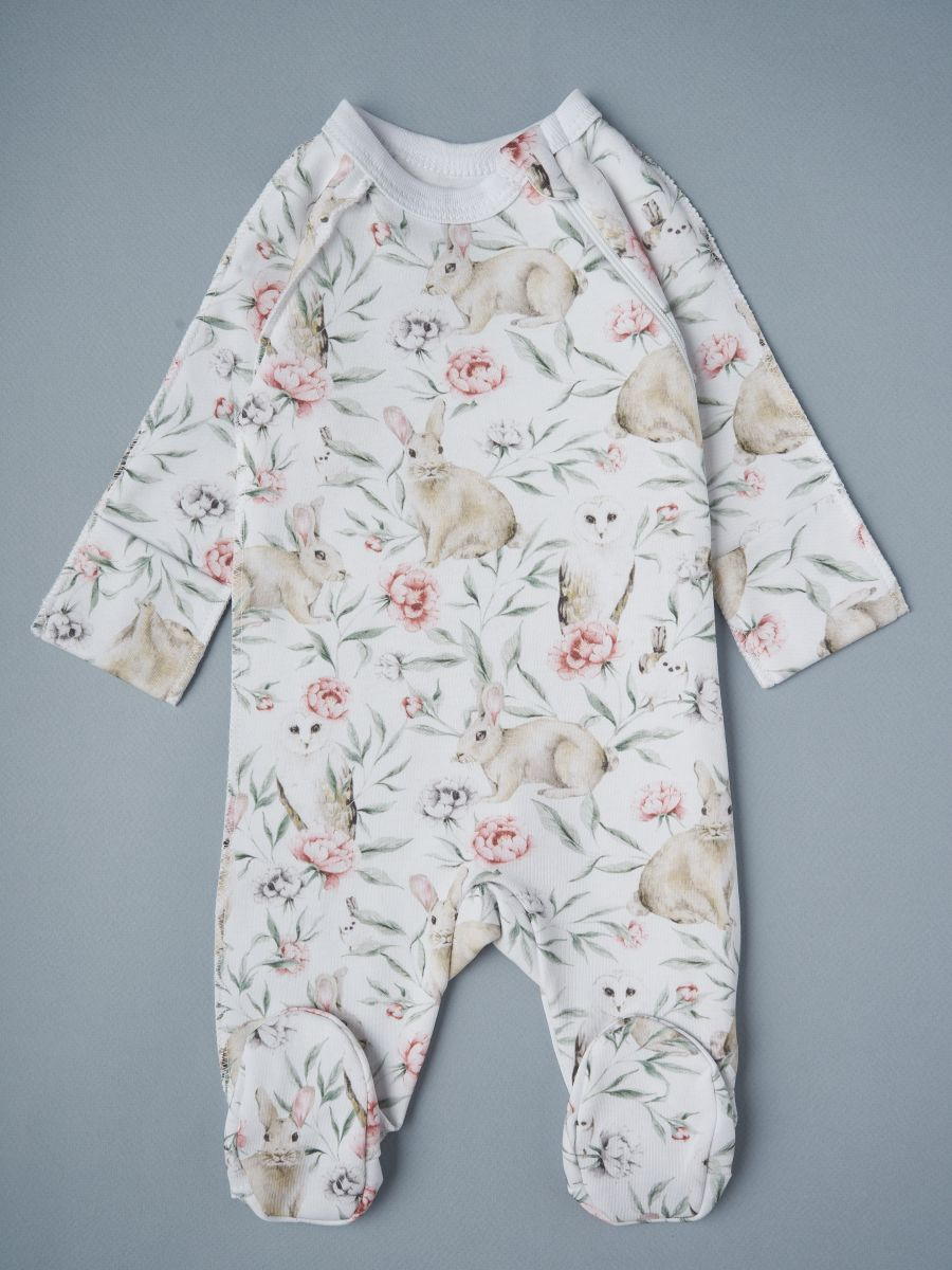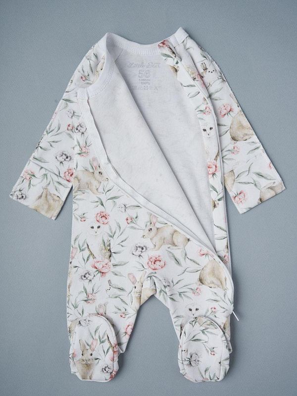 Комбинезон на молнии Little Star Зайки и совы 0208 (ЧЗ-мз) белый 56