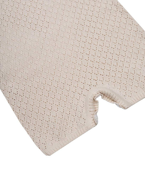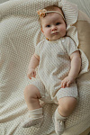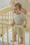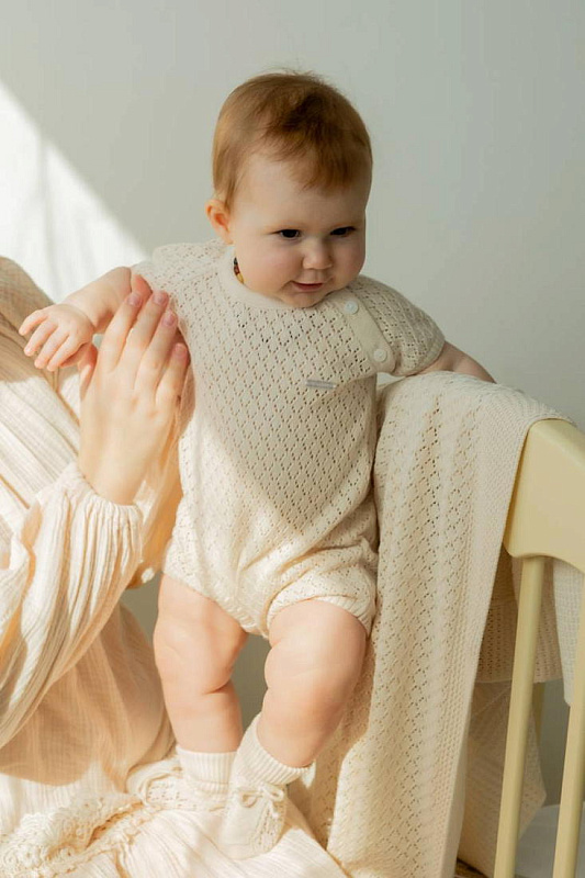 Комбинезон "Ромбы" выполнен из 100% хлопка, что обеспечивает мягкость и комфорт для нежной кожи малыша. Материал отличается дышащей структурой, идеально подходящей для любого времени года. Цвет изделия – глубокий индиго, который сохраняет свою насыщенность даже после многократных стирок. Дизайн комбинезона украшен узором в виде ромбов, придающим оригинальный и современный вид. Фактура ткани вязано-перфорированная, что делает изделие особенно приятным на ощупь и визуально привлекательным. Конструкция предусматривает удобные кнопки на плече для легкого переодевания, что особенно важно для малышей и родителей. Короткие рукава и свободный крой не сковывают движений, обеспечивая максимальную свободу и комфорт в носке. Комбинезон "Ромбы" подходит как для ежедневной носки, так и для особых случаев. Изделие легко стирается, быстро сохнет и сохраняет форму после ухода.