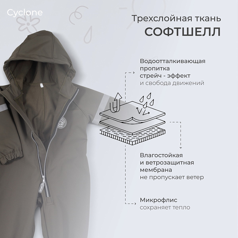 Детский комбинезон RANT CYCLONE подарит малышу невероятное ощущение уюта и тепла. Модель покорит вас: инновационным влагоотталкивающим и ветронепроницаемым материалом софтшелл, тщательно продуманными деталями кроя, лаконичным исполнением, комфортным лекалом.