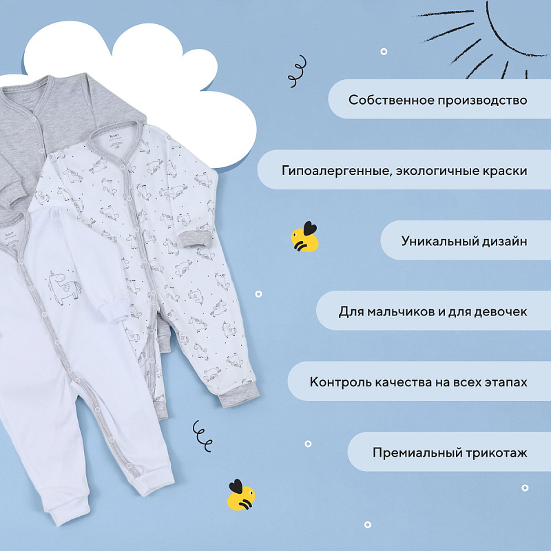 Комбинезоны (слипы) из этой коллекции станут настоящим украшением гардероба вашего крохи. Благодаря кнопочкам, расположенным по всей длине изделий, вам будет комфортно переодевать малыша.