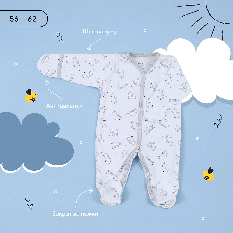 Набор Rant Единорожки с особой теплотой создан для новорожденных и малышей постарше. Базовые расцветки, очаровательный контурный принт, лаконичное исполнение, премиальные ткани - визитная карточка нашей одежды.