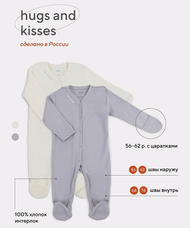 - Свежая коллекция Hugs and kisses покажет всю вашу нежность и заботу. Актуальные однотонные расцветки, лаконичный дизайн, качественная фурнитура в тон и хлопок премиум класса (интерлок-пенье)