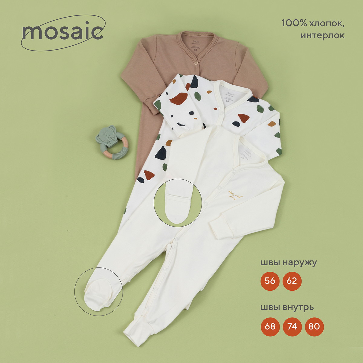 Лимитированная коллекция Mosaic - верный способ сделать детство особенным. Актуальный мозаичный принт, базовые цвета, лаконичный дизайн, комфортное лекало, качественная фурнитура в тон и хлопок премиум-класса (интерлок-пенье).