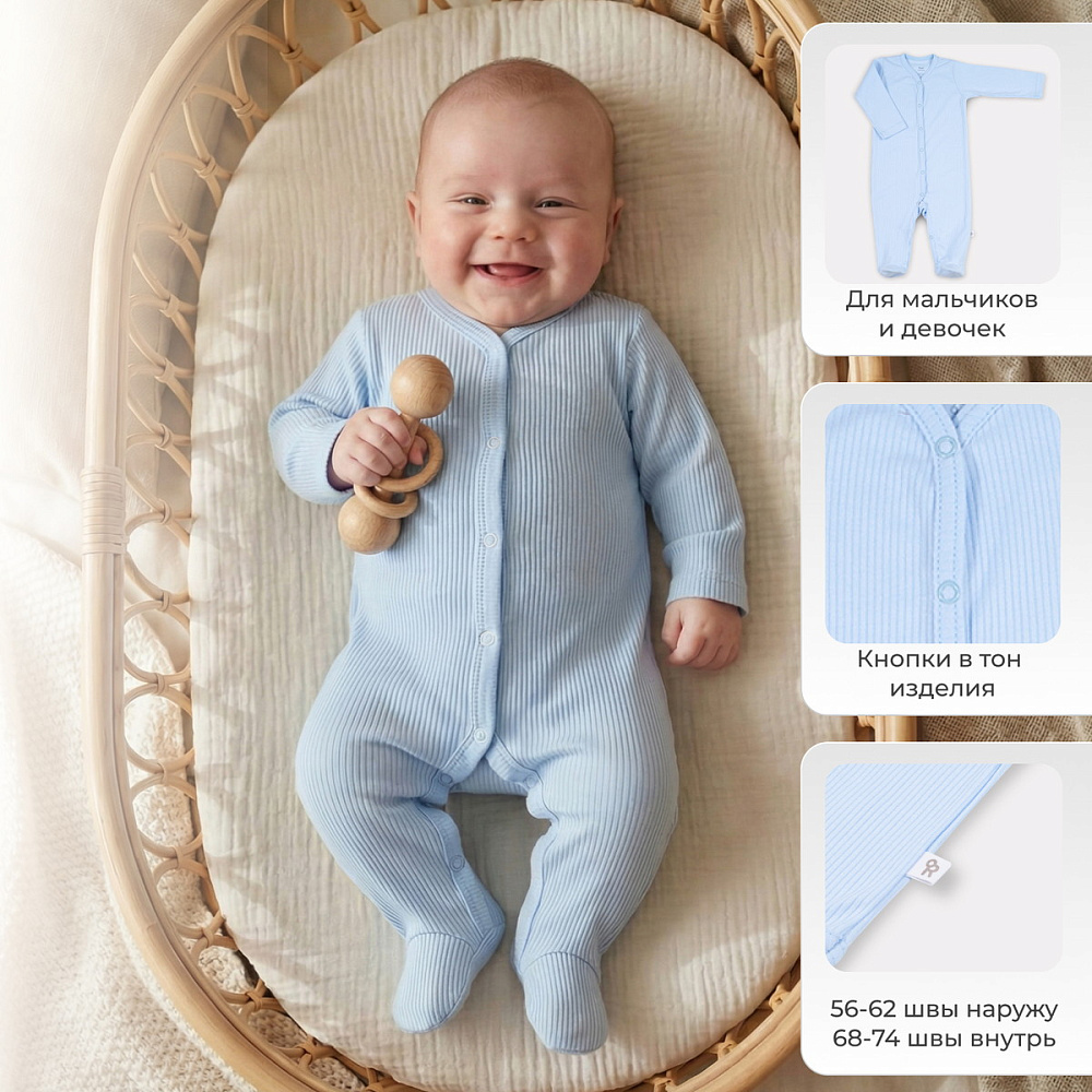 Комбинезон (слип) из этой коллекции обязательно завоюет сердечко вашего крохи. А вам, благодаря кнопочкам, расположенным по всей длине, будет удобно переодевать малыша.