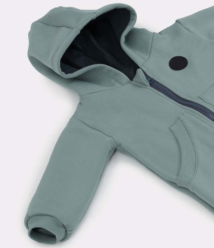 - комбинезон выполнен из гипоаллергенных и невероятно приятных на ощупь тканей. Основной материал - нежный и теплый футер, подклад - интерлок-пенье
