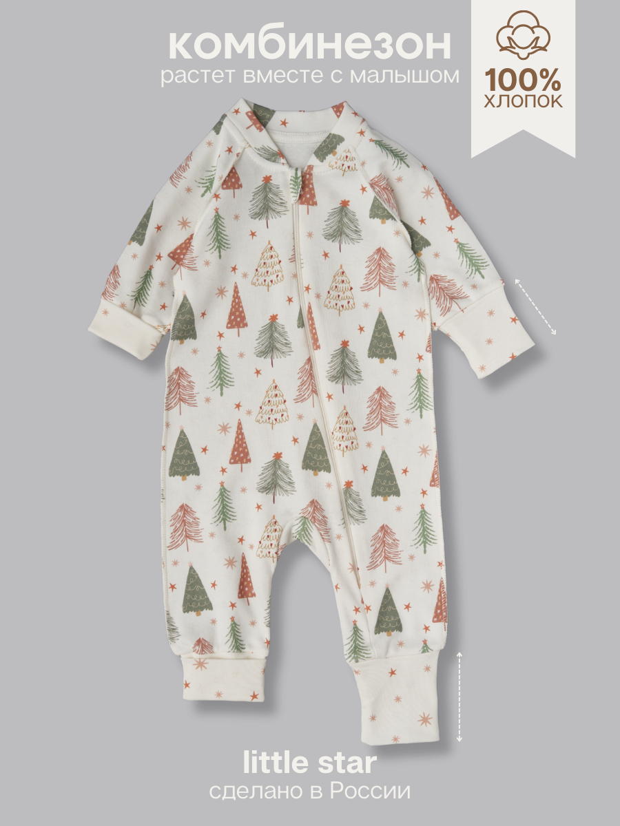 Комбинезон растущий на молнии Little Star Елочки со звездочками на креме интерлок 13016 (ЧЗ-мз) крем 68