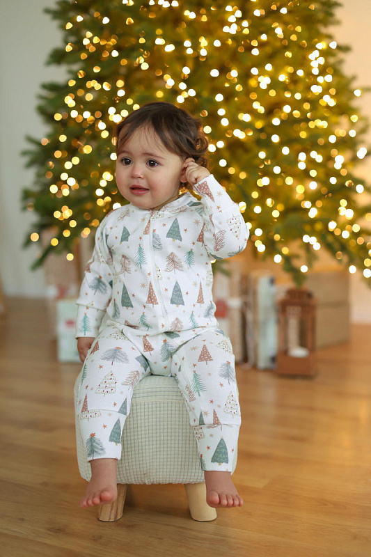 Комбинезон растущий на молнии Little Star Елочки со звездочками на креме интерлок 13016 (ЧЗ-мз) крем 74