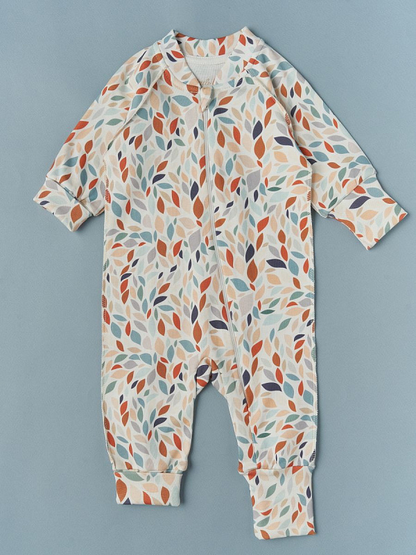 Комбинезон растущий на молнии Little Star интерлок 13016 (мз) листочки, крем 56